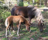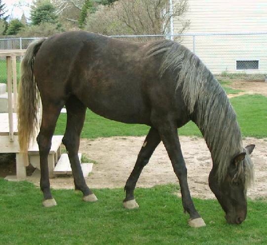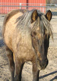 clearly gold and shed out to this dark color. Her sire was also a very sooty palomino. In the picture to the right, taken in her winter coat,
