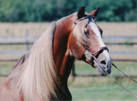 Youlenda's full sister Orcland Queen Bess, registered as chestnut but likely a bay