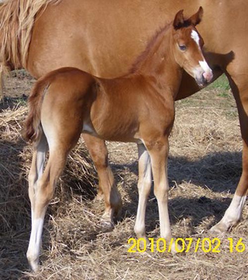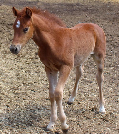 chestnuts to the mare Dan's Baby, by Dan. Photo courtesy of Tam Dirrim.