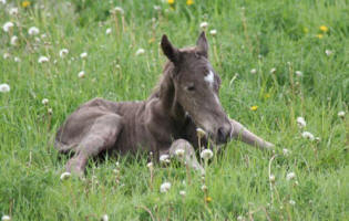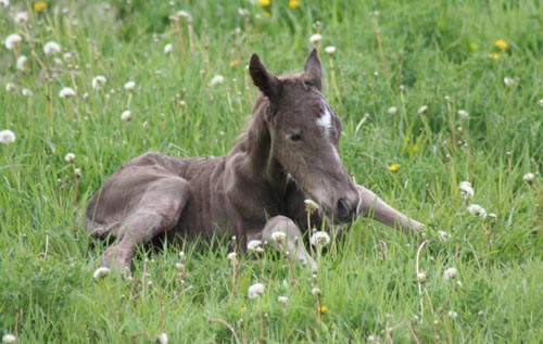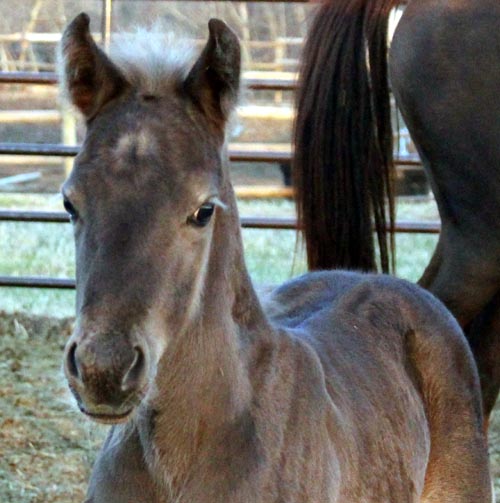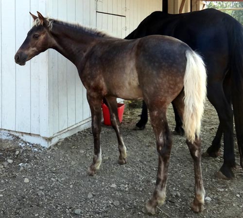 Schaenzer's Silver Triumph (KTM Shadowflax x Mary Mels The Black Widow) black silver dapple colt foaled 4/9/2013.