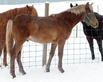 Pictured left in winter coat as a coming yearling, and on the right in May 2005. Photos courtesy of Tam Dirrim.