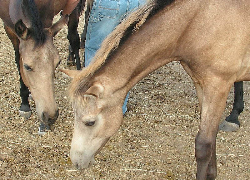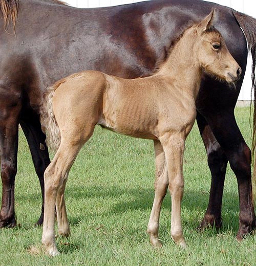 buckskin-only half siblings, shown in the foal pictures with him, provide a contrast
