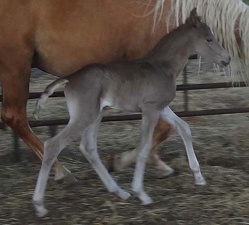 leg coloring and silvery mane and tail can be clearly seen. This colt's